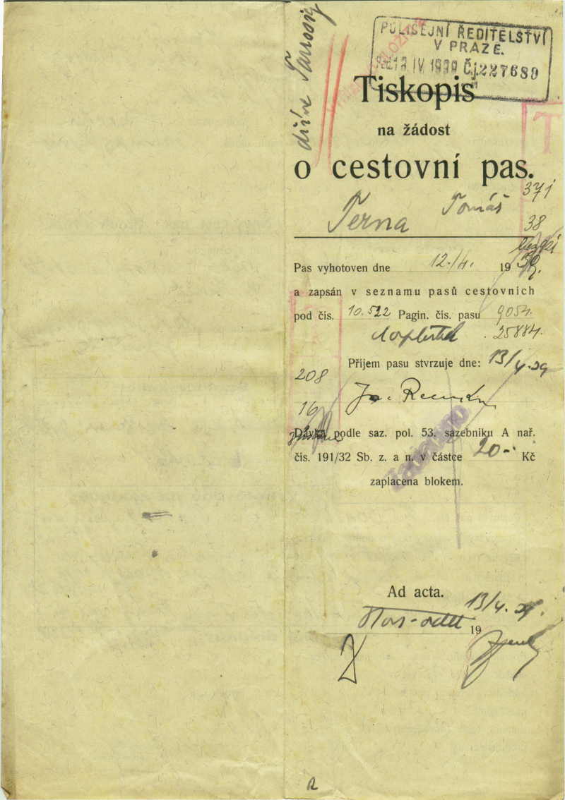 Terna Tomáš: Žádost o vydání cestovního pasu