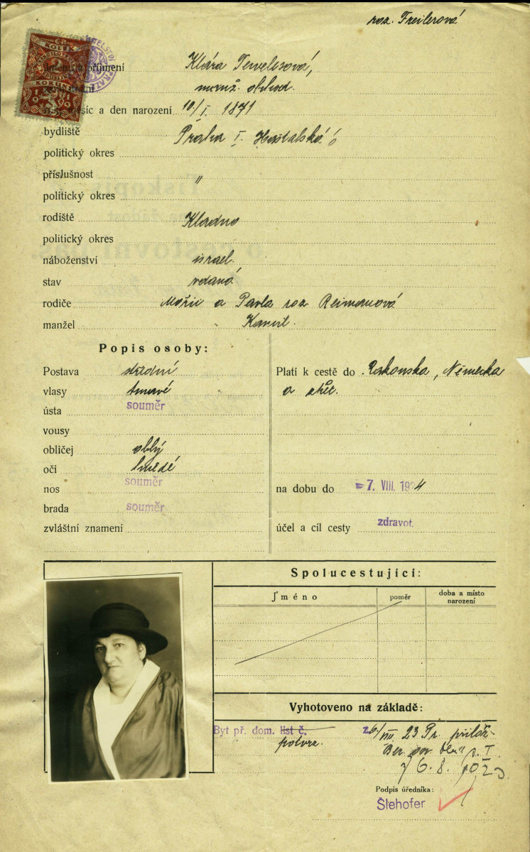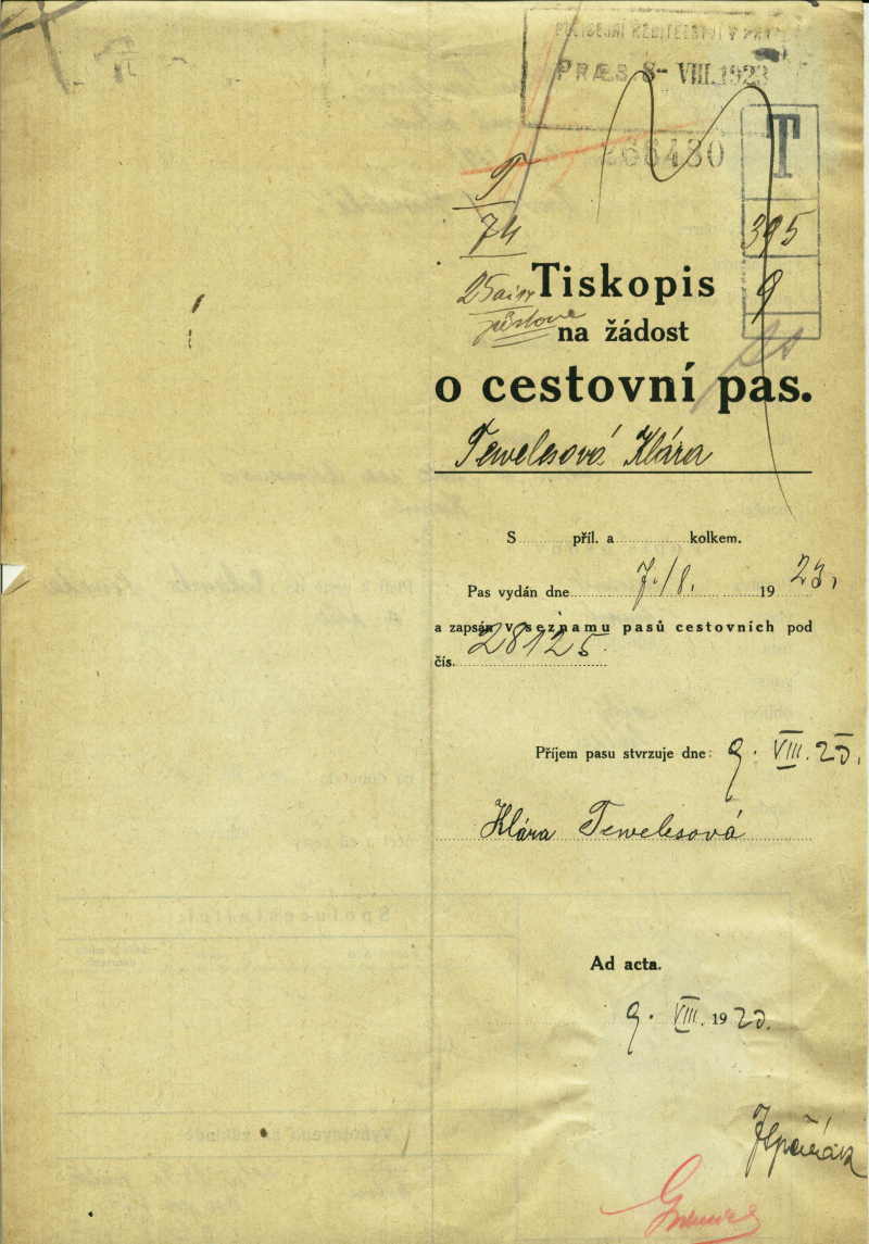 Tewelesová Klára: Žádost o vydání cestovního pasu
