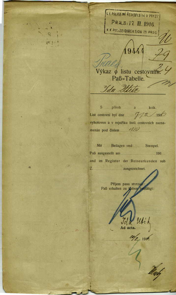 Utitzová Ida: Žádost o vydání cestovního pasu
