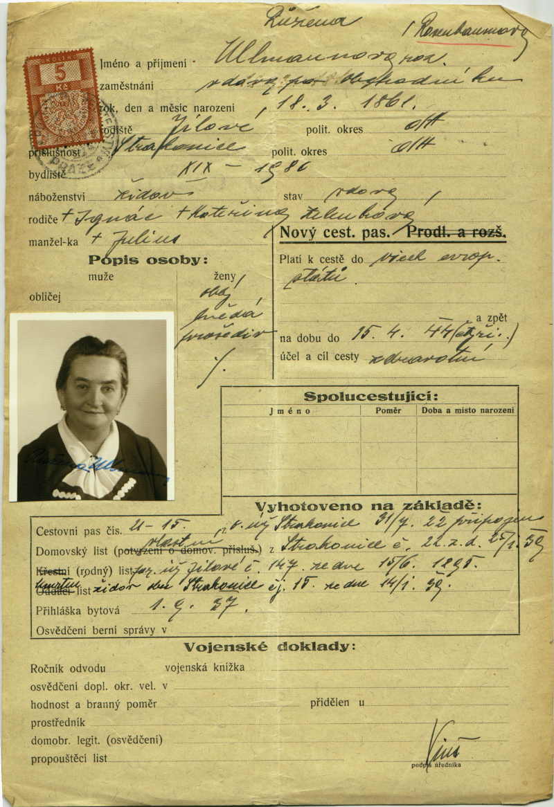 Ullmannová Růžena: Žádost o vydání cestovního pasu