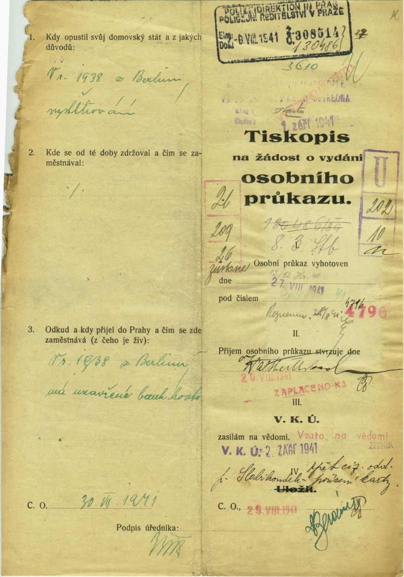 Urbach Valtr: Žádost o vydání občanské legitimace