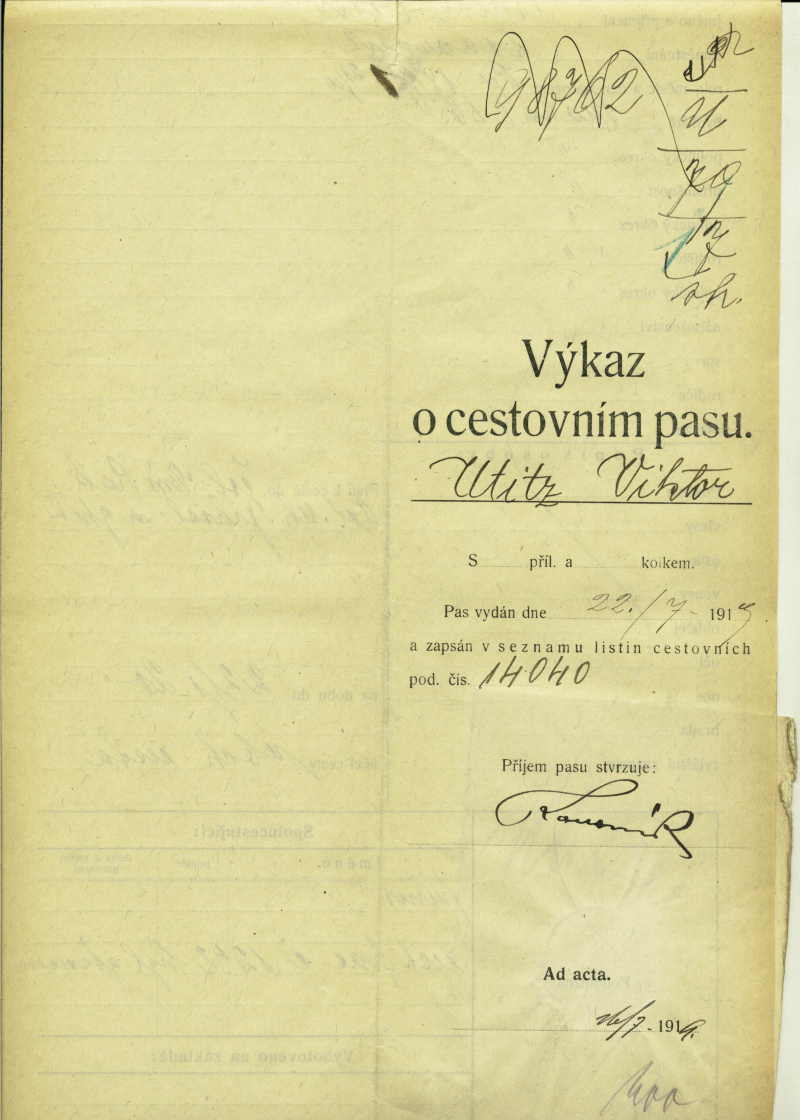 Utitz Viktor: Žádost o vydání cestovního pasu