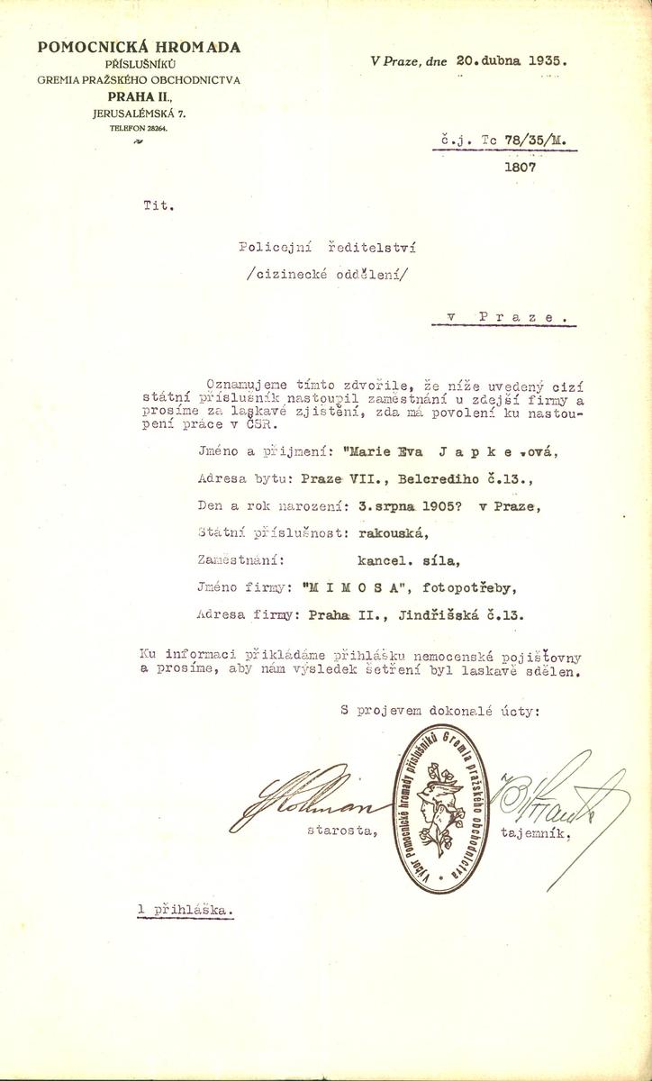 Japkeová Eva-Marie: Šetření o povolení k nastoupení do zaměstnání