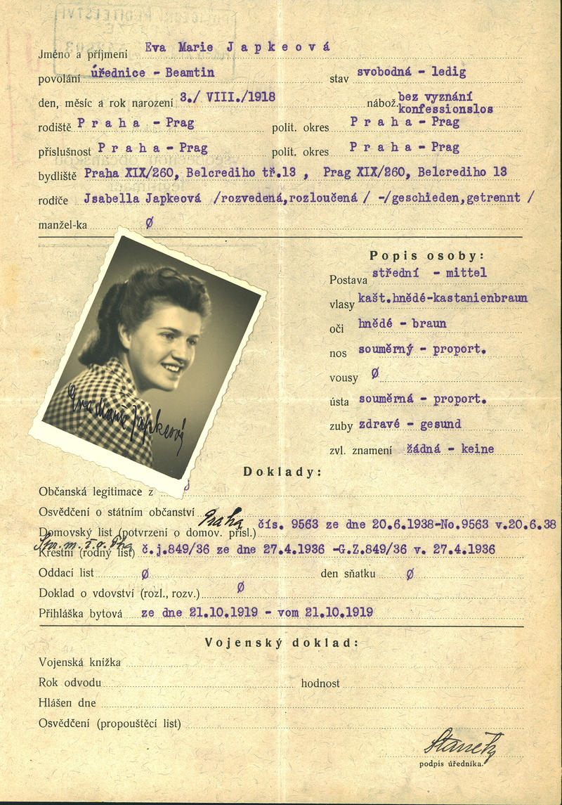Japkeová Eva-Marie: Žádost o vydání občanské legitimace