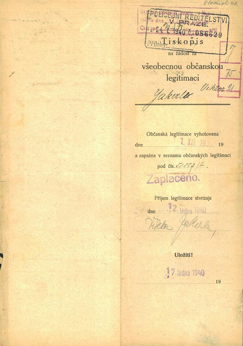 Jackerle Viktor: Žádost o vydání občanské legitimace