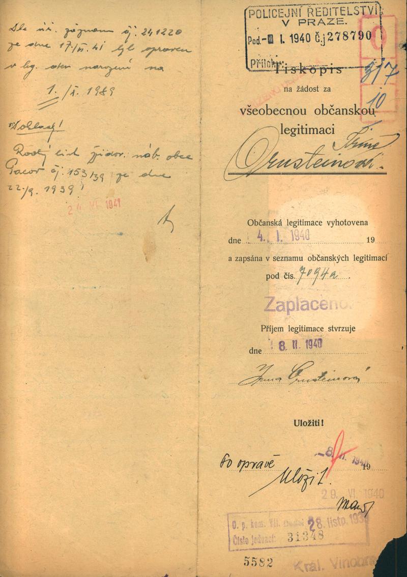 Ornsteinová Irma: Žádost o vydání občanské legitimace