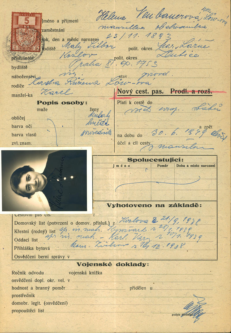 Neubauerová Helena: Žádost o vydání cestovního pasu