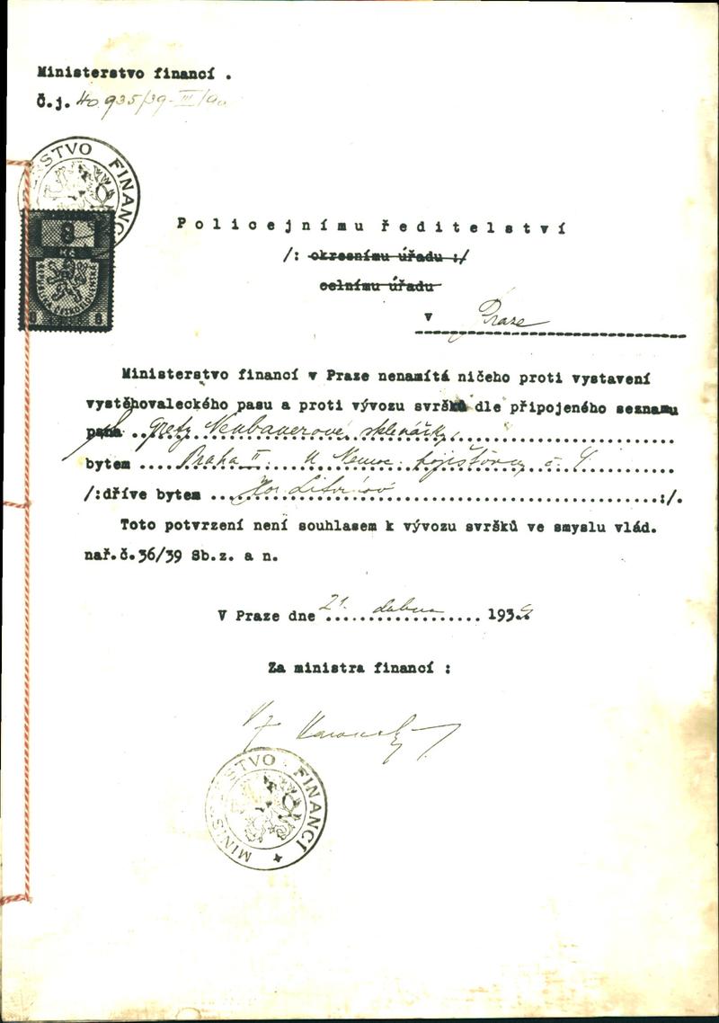 Neubauerová Greta: Souhlas s vydáním vystěhovaleckého cestovního pasu