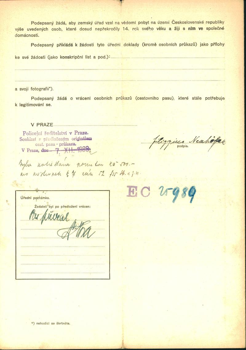 Neuhöferová Filipina: Žádost o povolení pobytu
