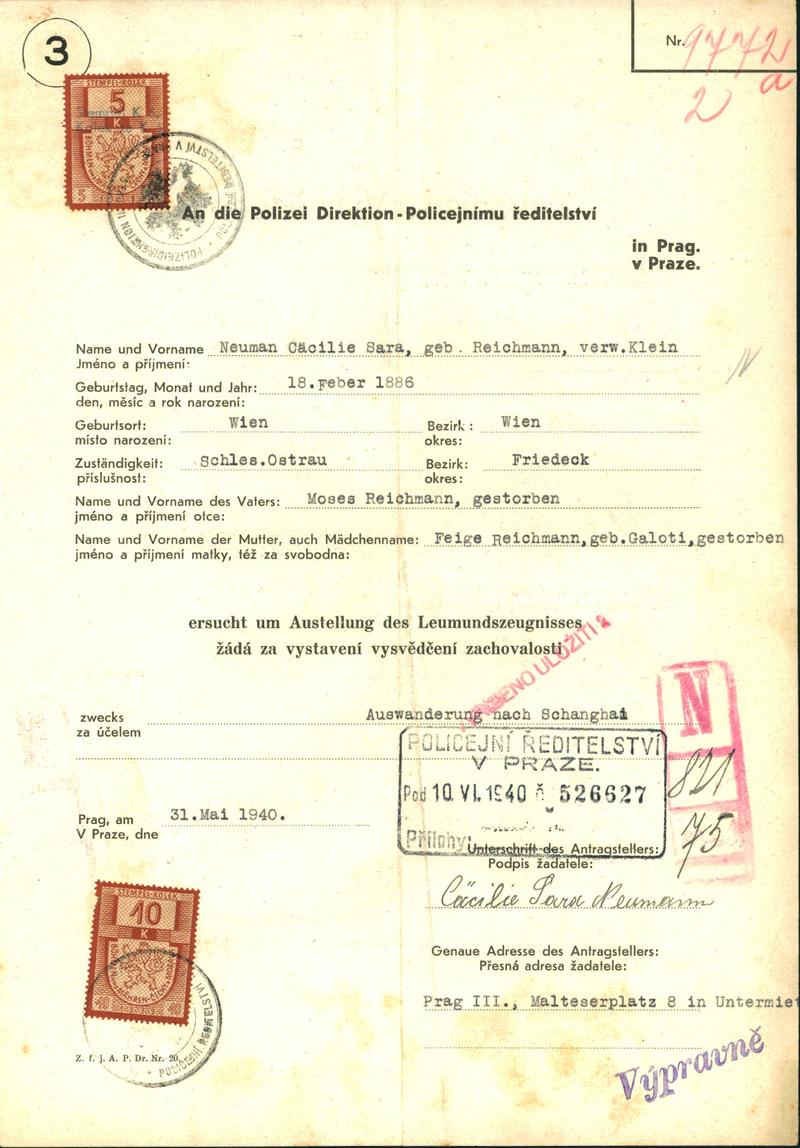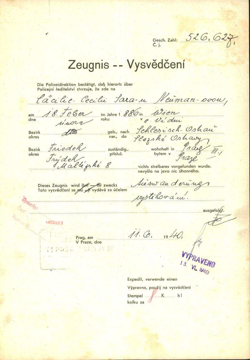 Neumannová Cecilie: Vysvědčení zachovalosti