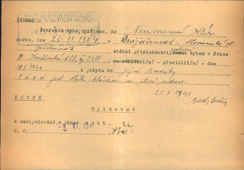 Neumannová Klara: Šetření o pobytu