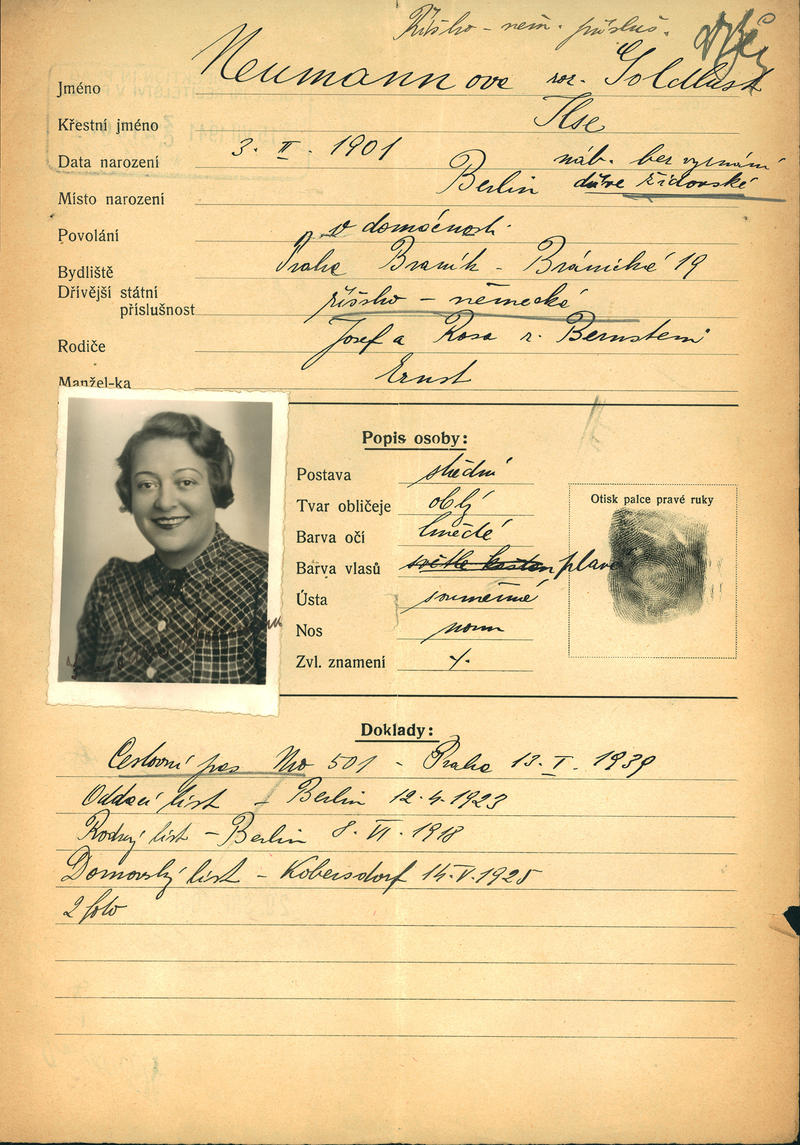 Neumannová Ilsa: Žádost o vydání občanské legitimace