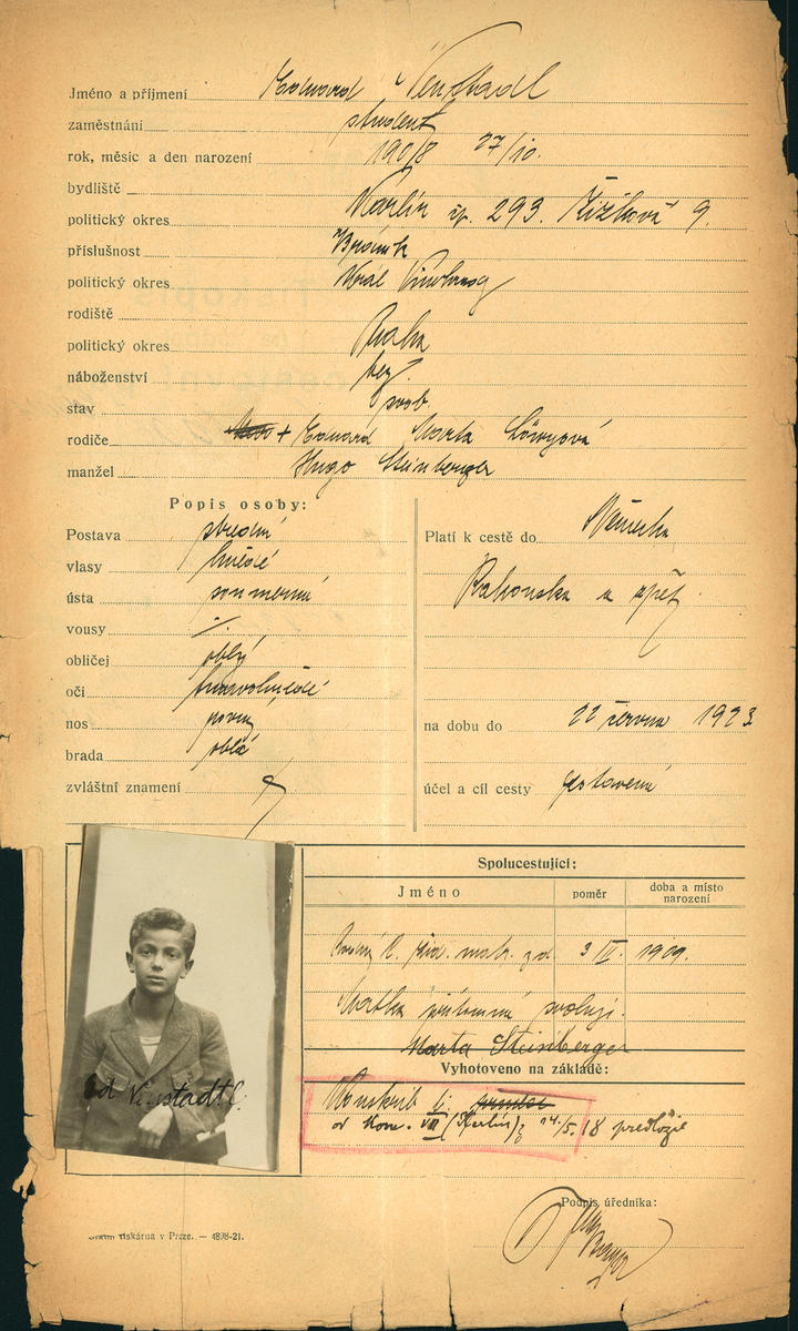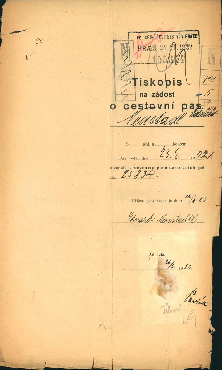 Neustadtl Eduard: Žádost o vydání cestovního pasu