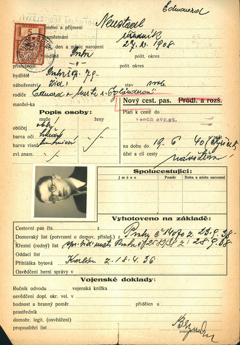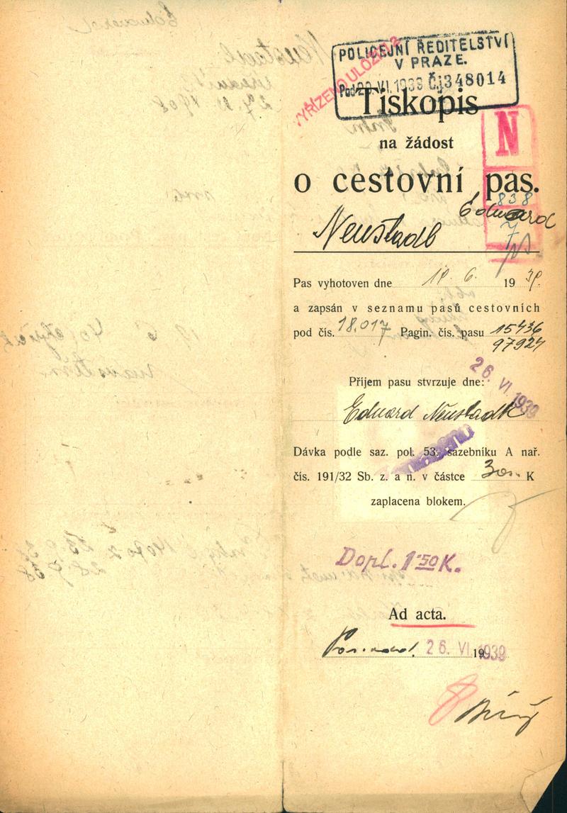 Neustadtl Eduard: Žádost o vydání cestovního pasu