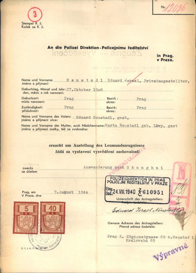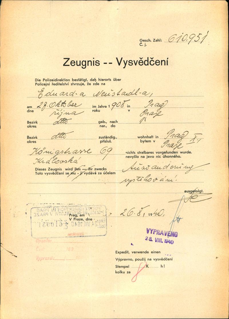 Neustadtl Eduard: Vysvědčení zachovalosti