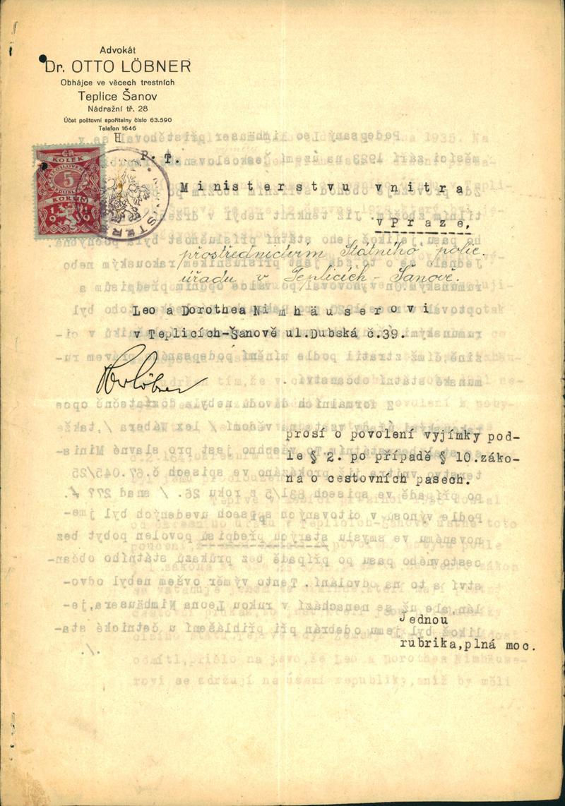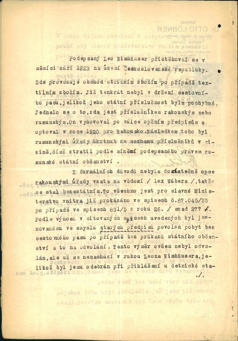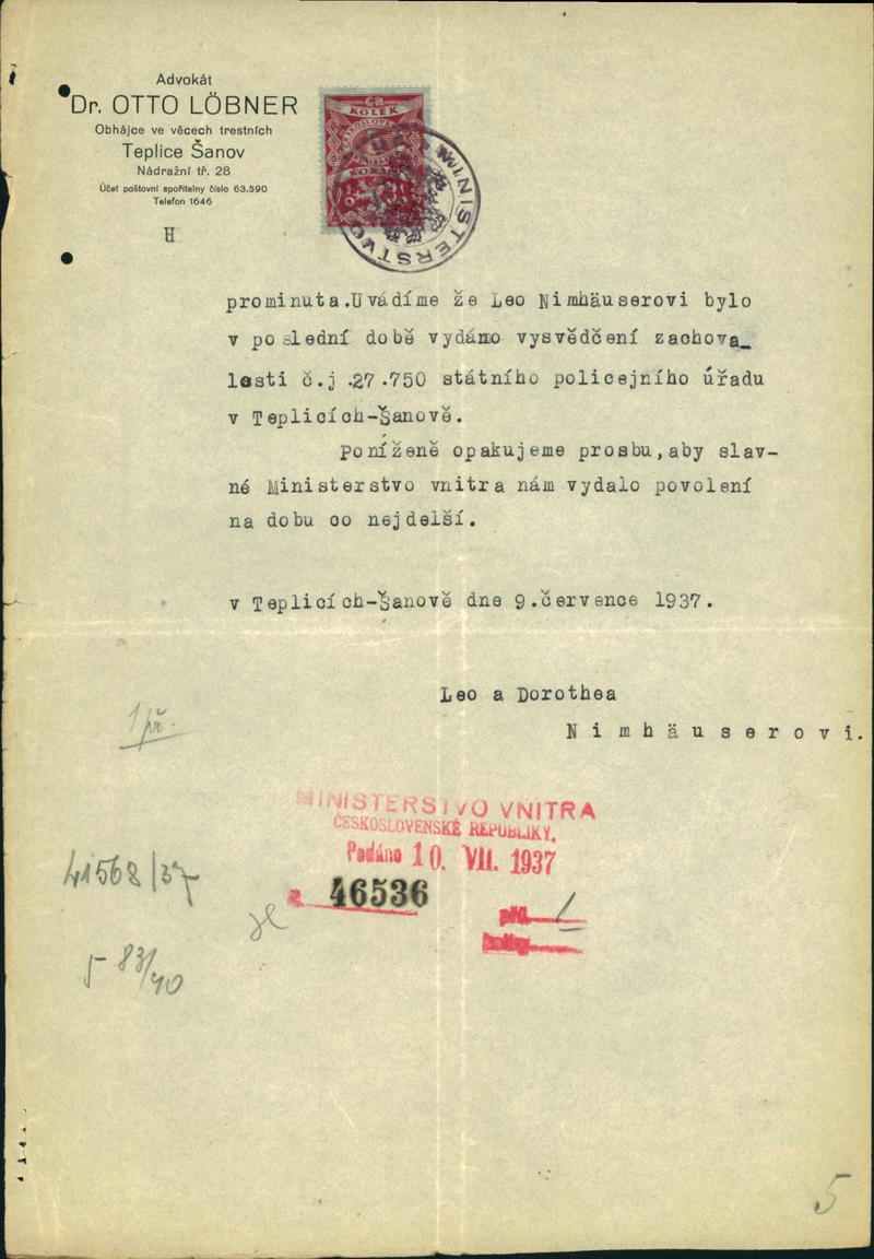Nimhäuser Leo: Žádost o povolení pobytu