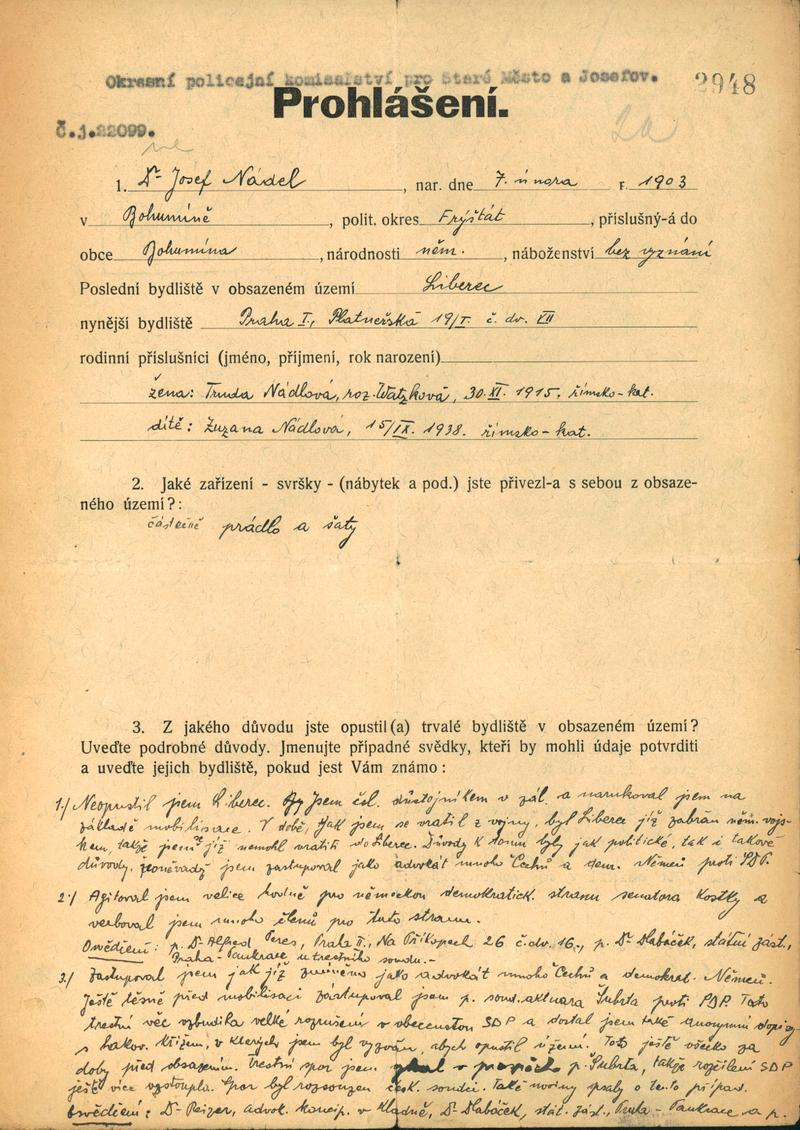 Nadel Josef: Protokol s uprchlíkem z pohraničí