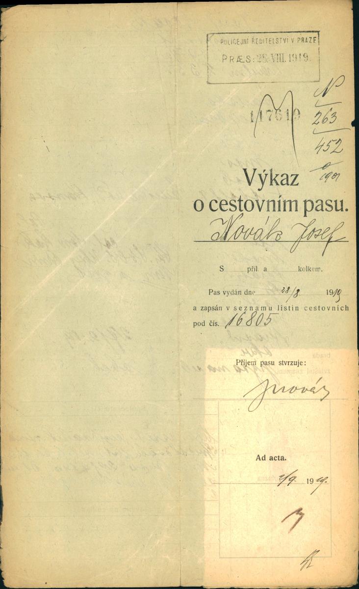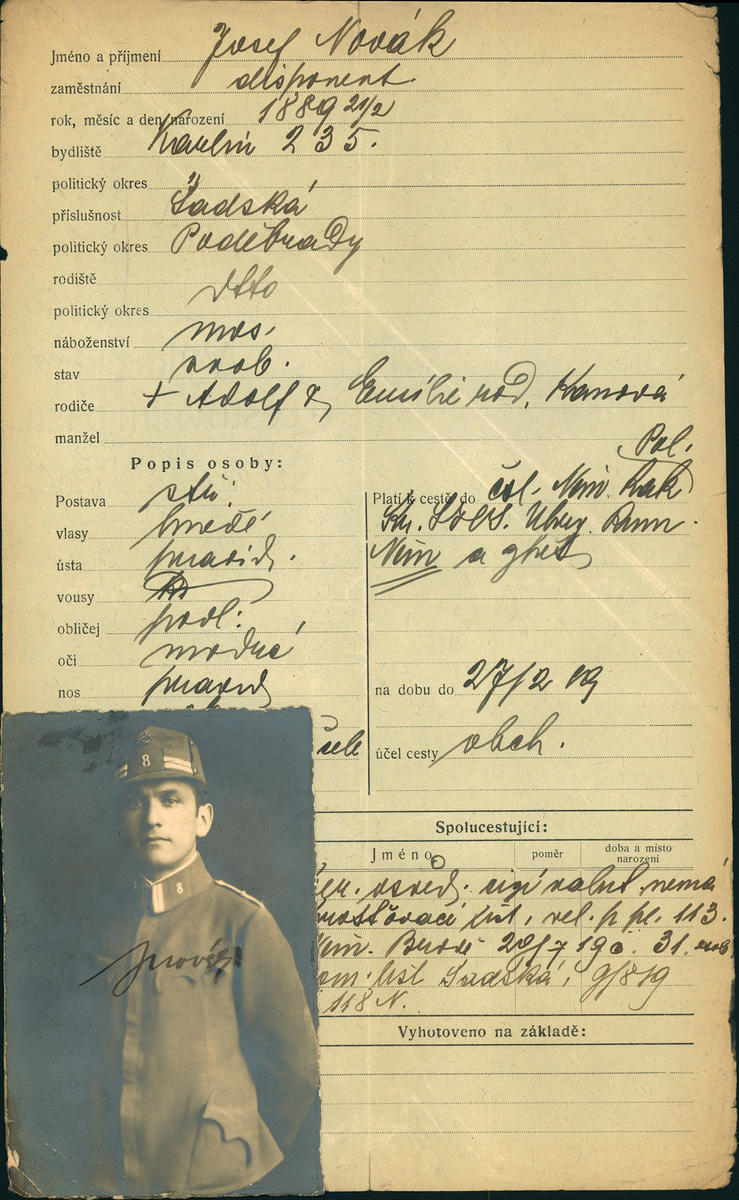 Novák Josef: Žádost o vydání cestovního pasu