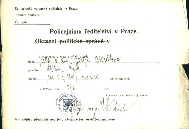 Novák Josef: Souhlas s vydáním cestovního pasu