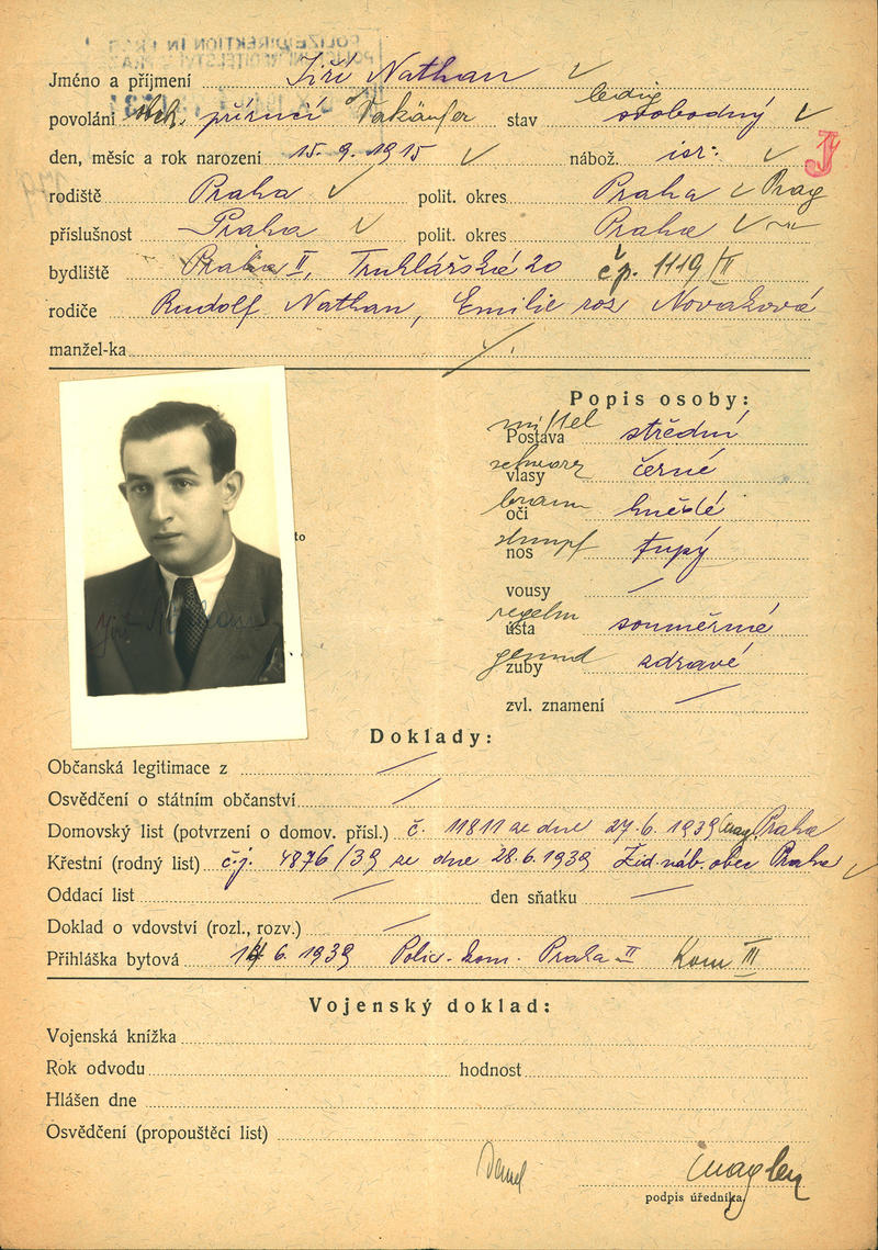 Nathan Jiří: Žádost o vydání občanské legitimace