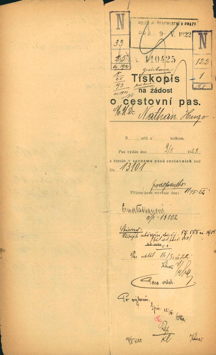 Nathan Hugo: Žádost o vydání cestovního pasu