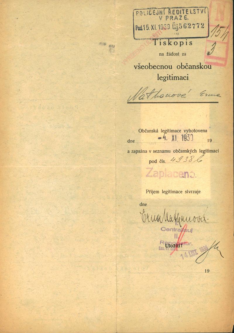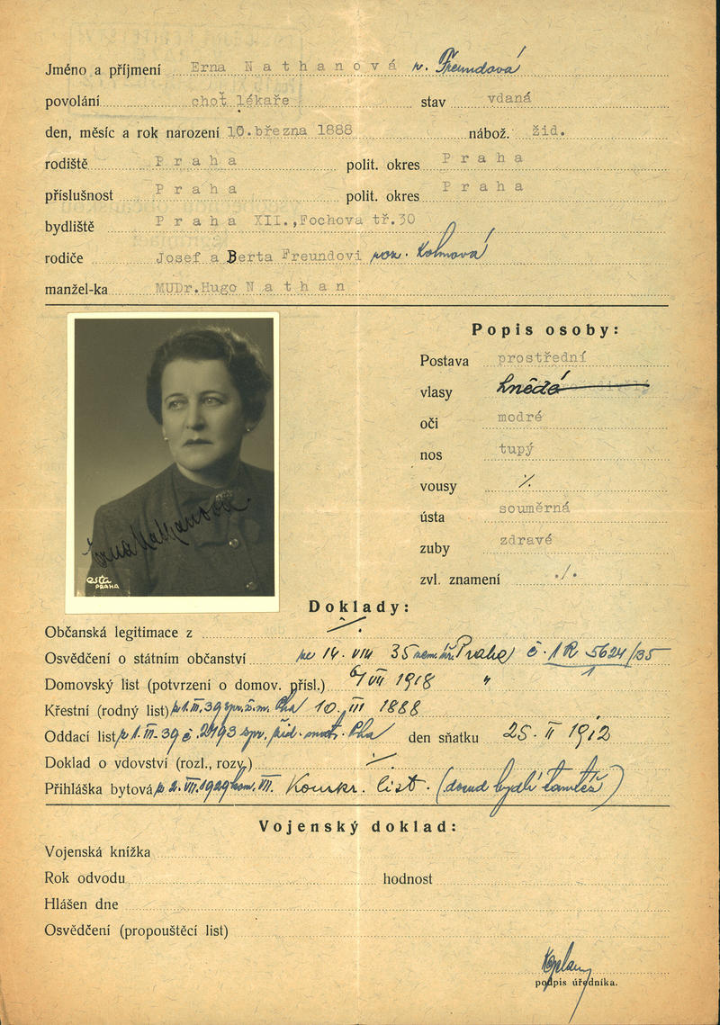 Nathanová Erna: Žádost o vydání občanské legitimace