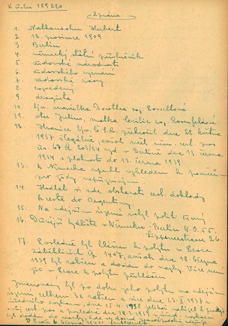 Nathanson Herbert: Protokol s uprchlíkem z Německa