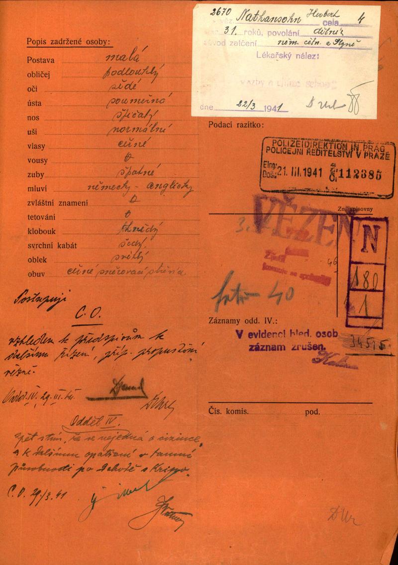 Národní archiv Praha > Policejní ředitelství v Praze > 1941-1950 > N > Nathanson Herbert