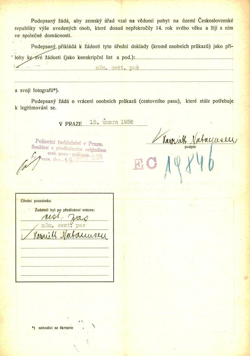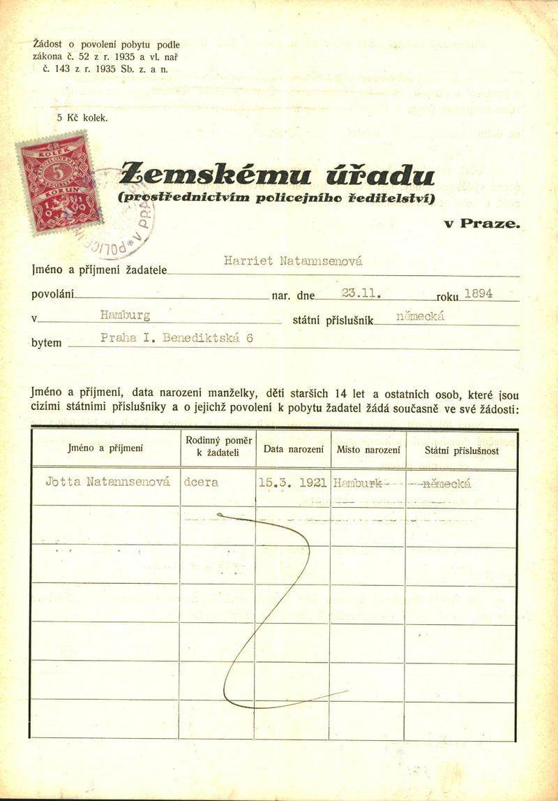 Natannsenová Harrieta: Žádost o povolení pobytu