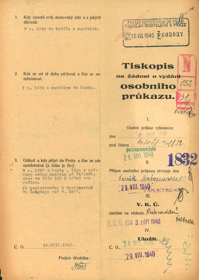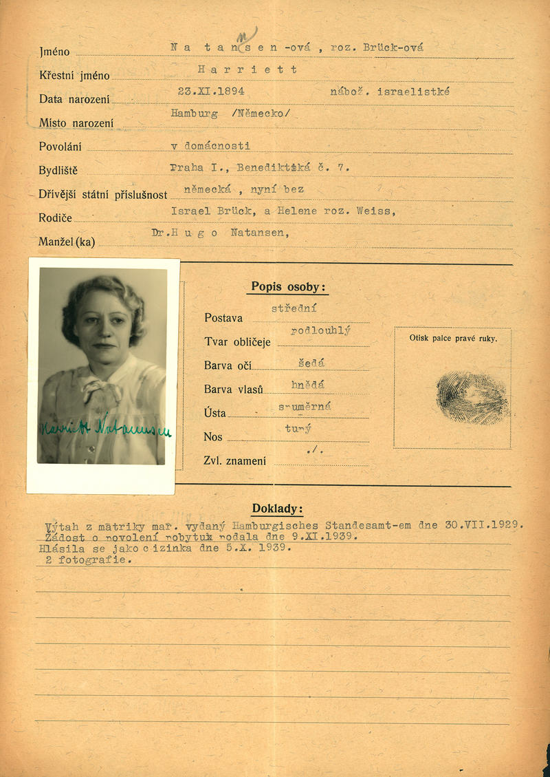 Natannsenová Harrieta: Žádost o vydání občanské legitimace