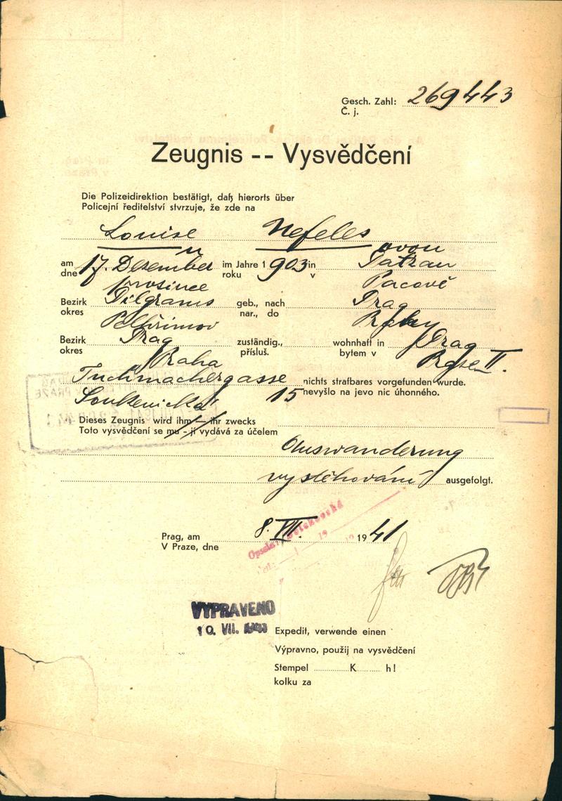 Nefelesová Aloisie: Vysvědčení zachovalosti