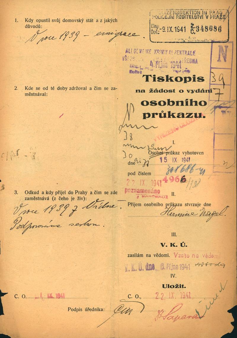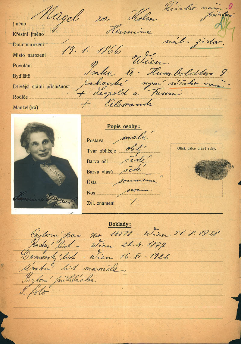 Nagelová Hermína: Žádost o vydání občanské legitimace