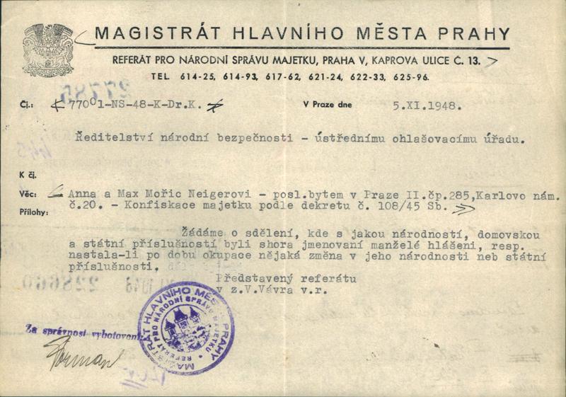 Neiger Moritz: Přezkoumání státní příslušnosti