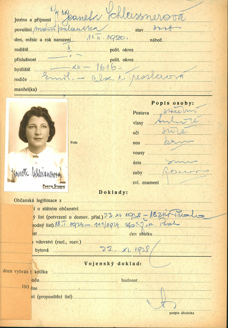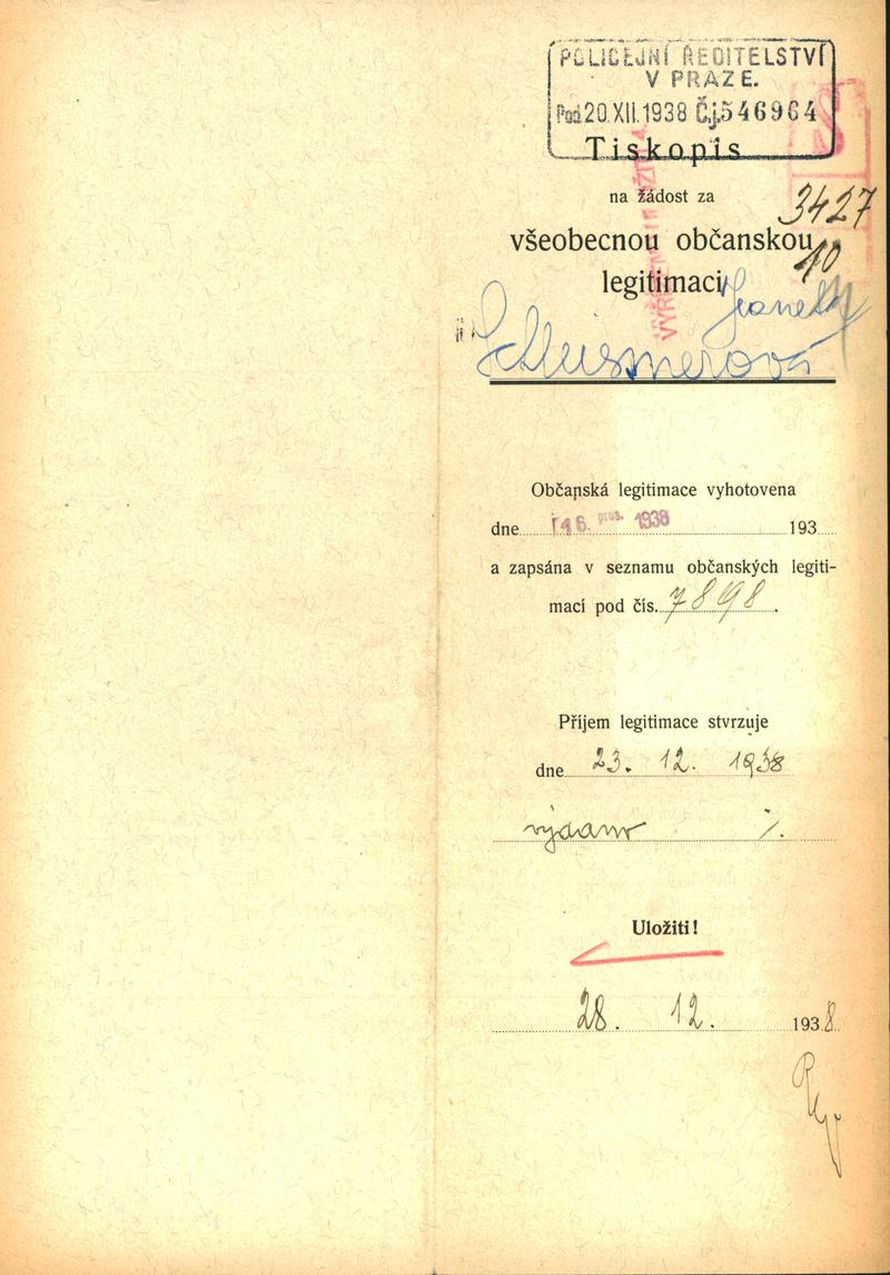 Nelanová Jeaneta: Žádost o vydání občanské legitimace