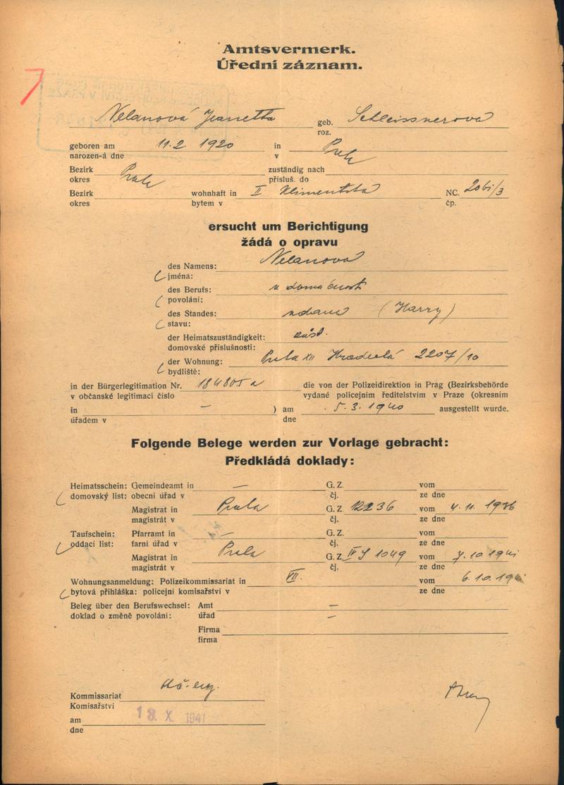 Nelanová Jeaneta: Žádost o opravu v občanské legitimaci