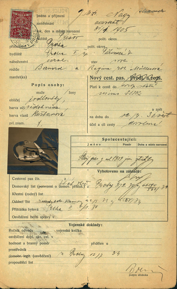 Nagy Sandór: Žádost o vydání cestovního pasu