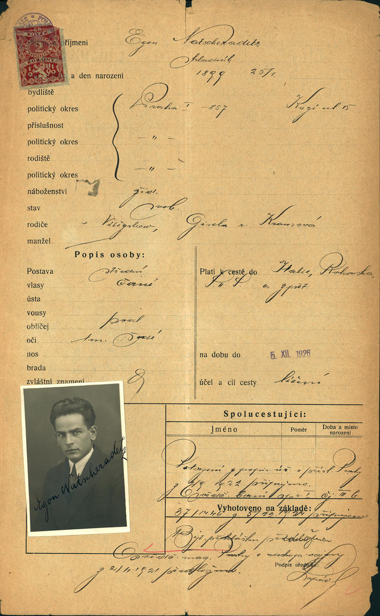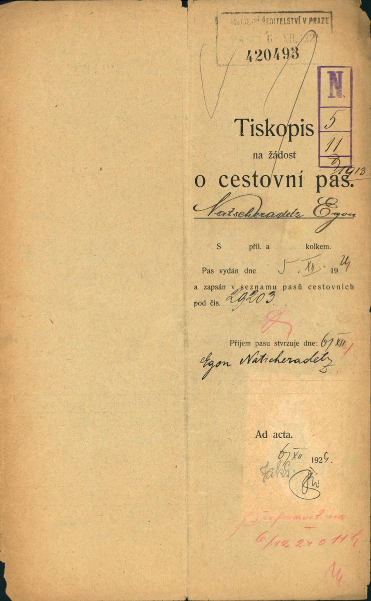 Natscheradetz Egon: Žádost o vydání cestovního pasu