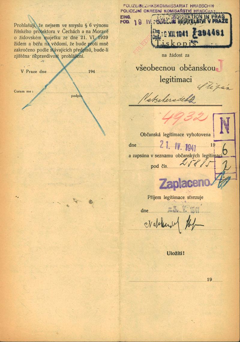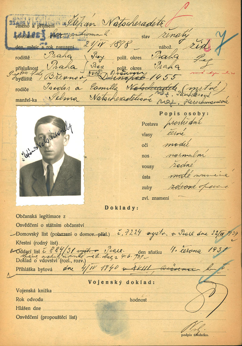 Natscheradetz Štěpán: Žádost o vydání občanské legitimace