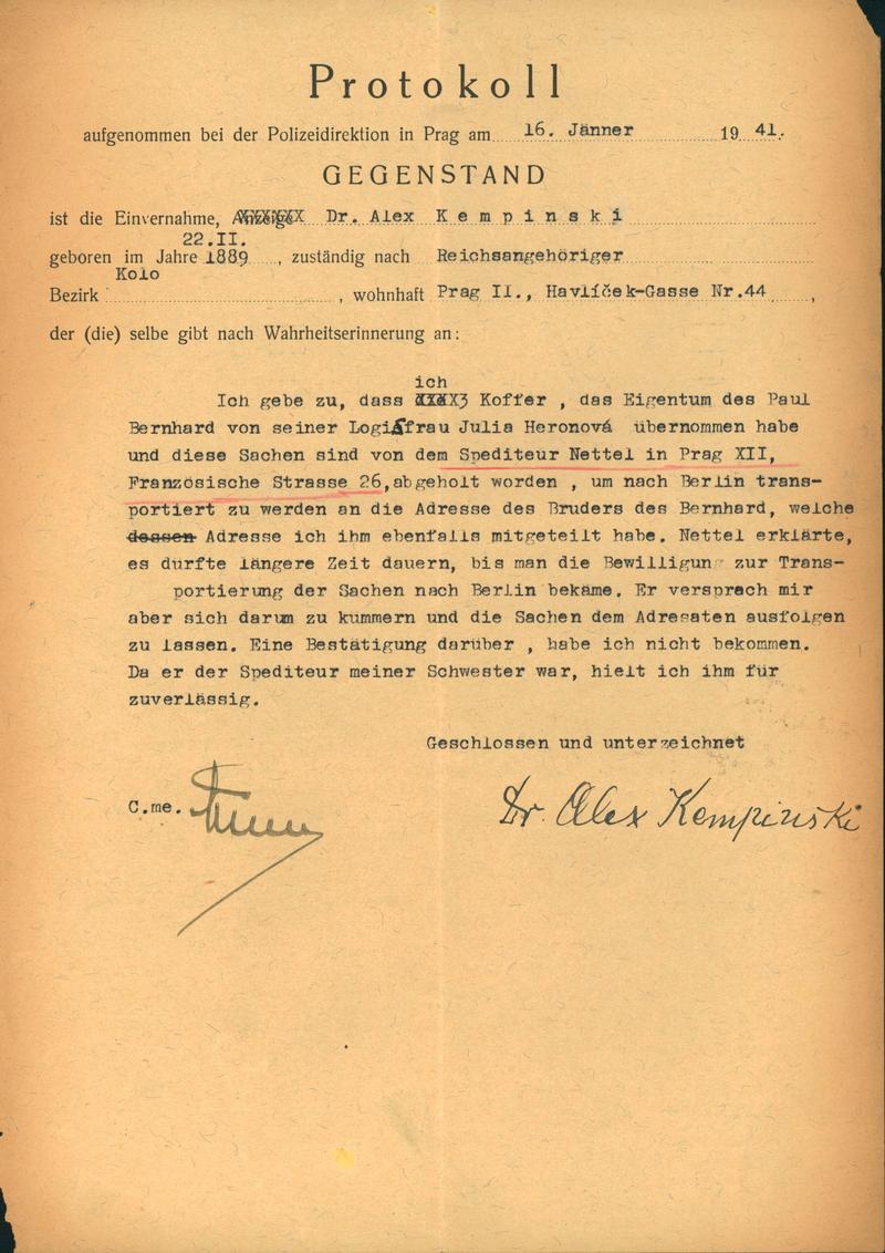 Nettel Adolf: Protokol o výslechu