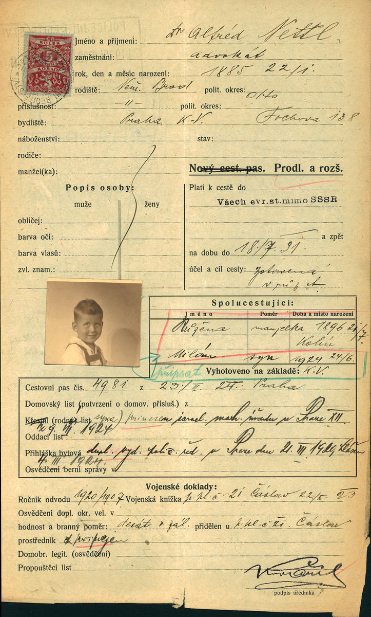 Nettl Alfred: Žádost o prodloužení a rozšíření cestovního pasu