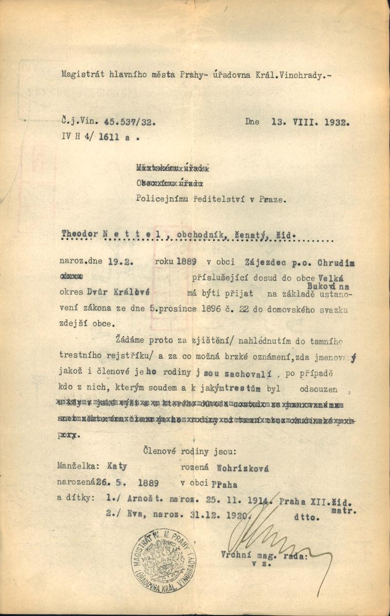 Nettel Theodor: Šetření o zachovalosti