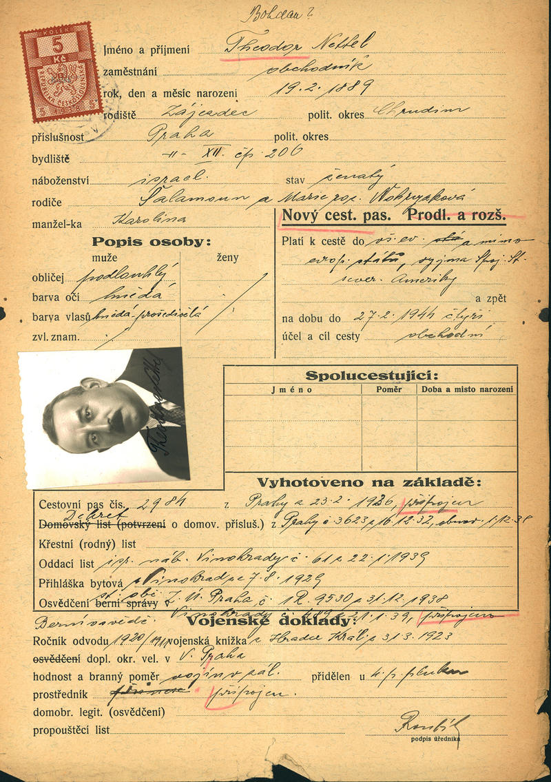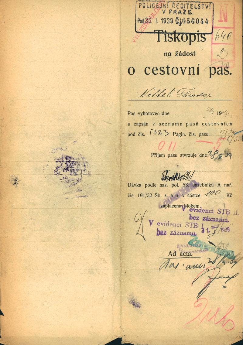Nettel Theodor: Žádost o vydání cestovního pasu