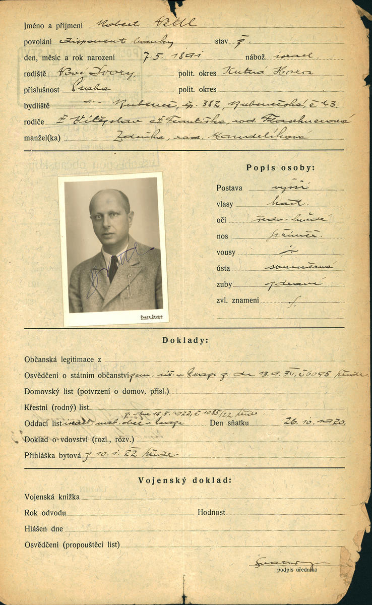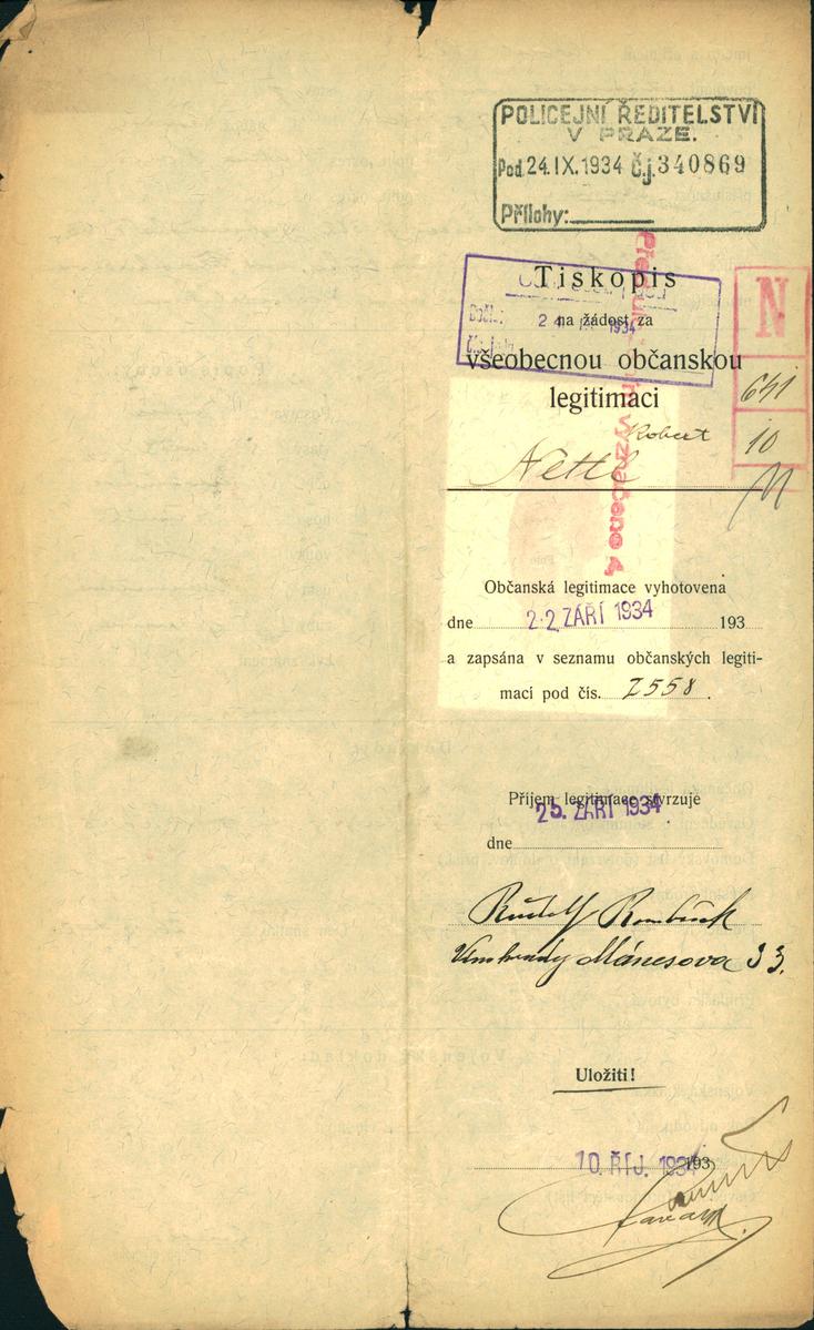 Nettl Robert: Žádost o vydání občanské legitimace