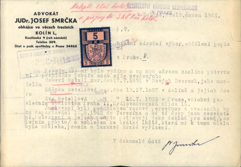 Národní archiv Praha > Policejní ředitelství v Praze > 1941-1950 > N > Nettl Robert