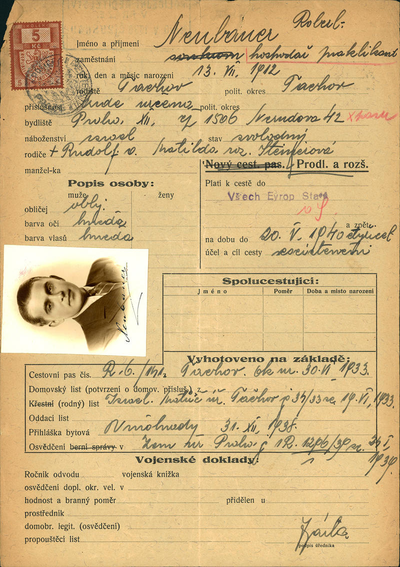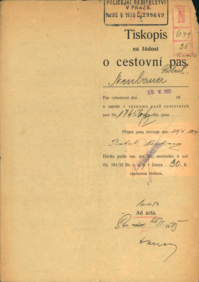 Neubauer Robert: Žádost o vydání cestovního pasu