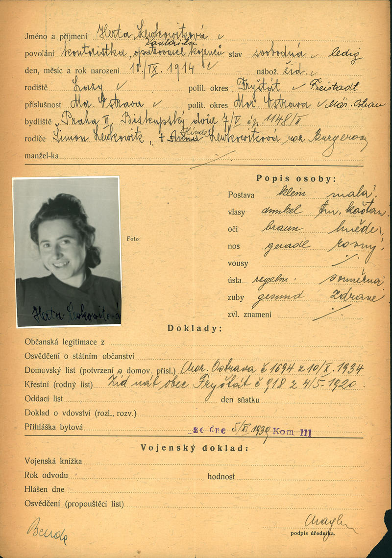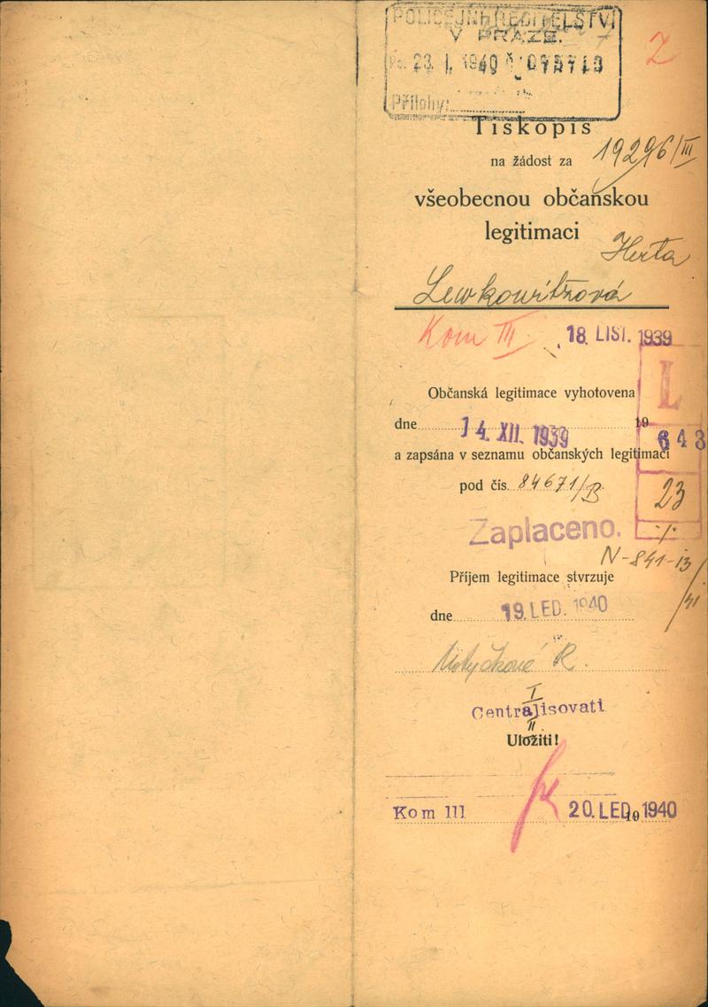 Neubauerová Berta: Žádost o vydání občanské legitimace