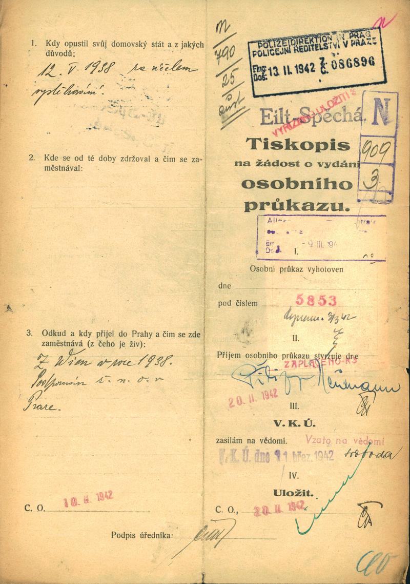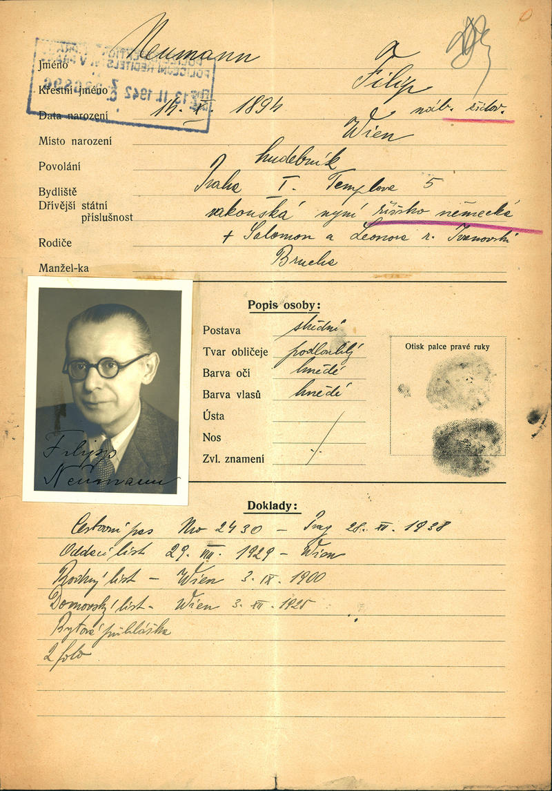 Neumann Philipp: Žádost o vydání občanské legitimace