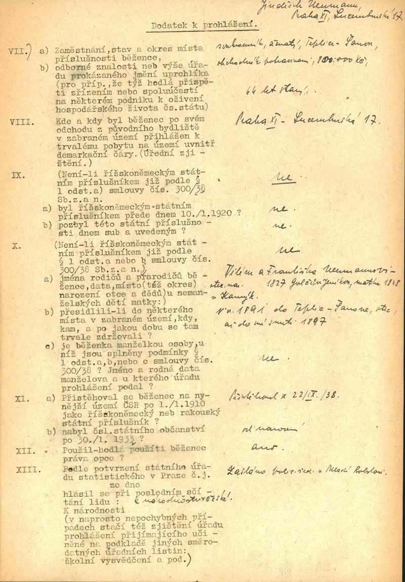Neumann Jindřich: Protokol s uprchlíkem z pohraničí