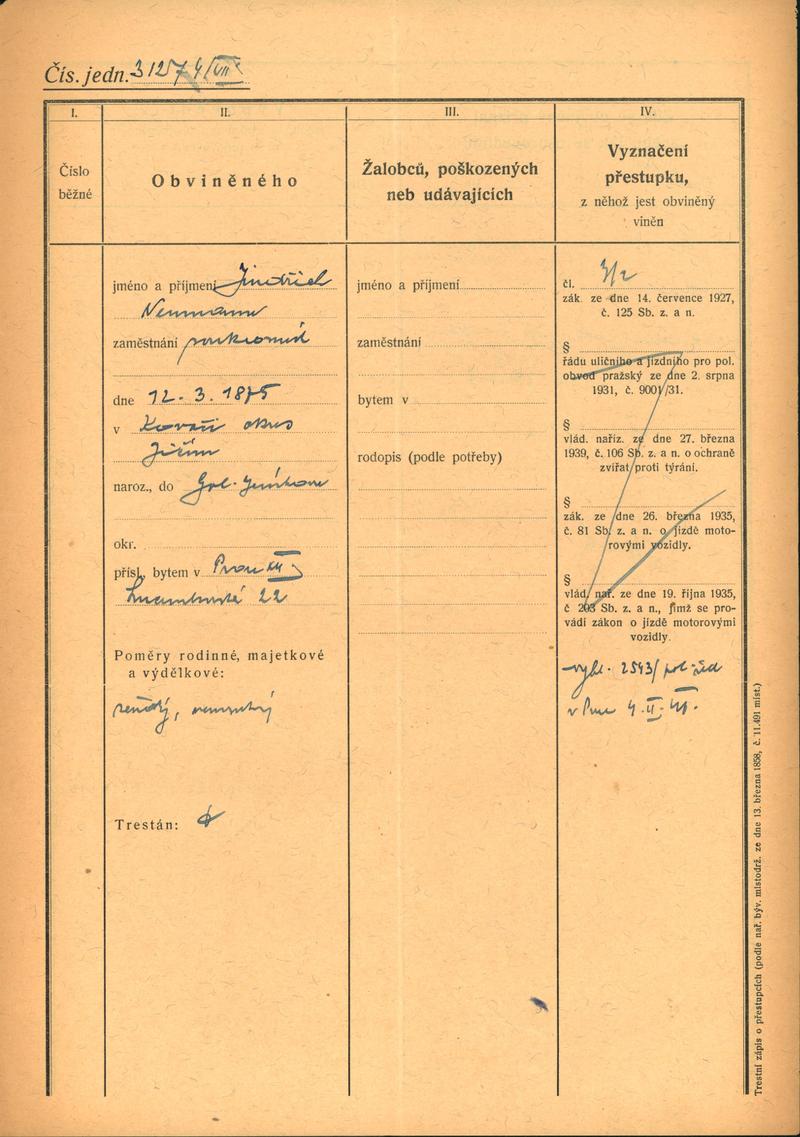 Národní archiv Praha > Policejní ředitelství v Praze > 1941-1950 > N > Neumann Jindřich