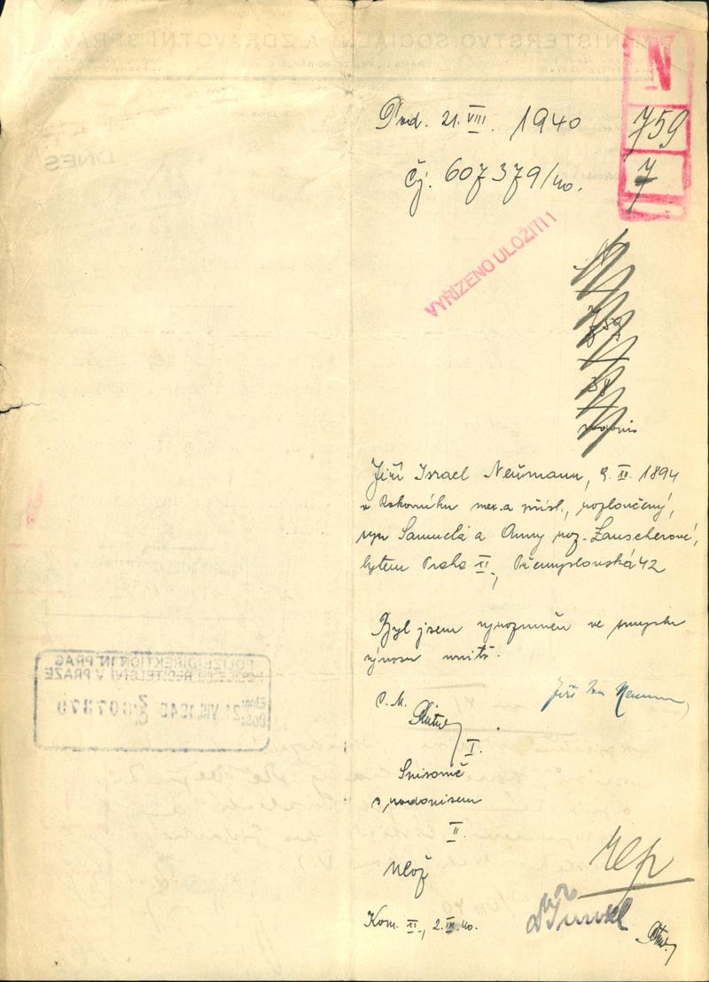 Neumann Jiří: Souhlas s vydáním vystěhovaleckého cestovního pasu